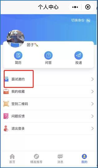 个人中心->面试邀约中,可查看用人单位空中面试邀请,并开始空中面试。