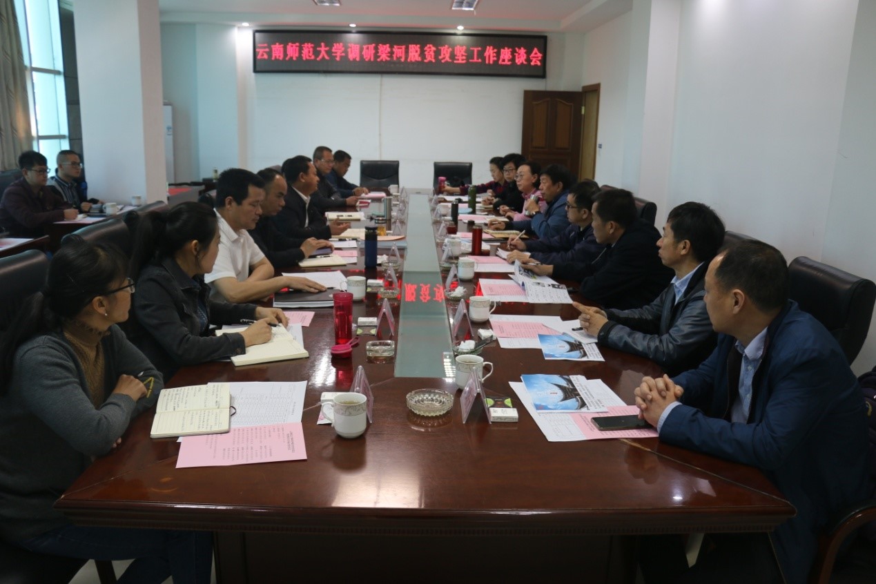 上午,饶书记一行与梁河县委县政府在梁河县县委会议室召开了梁河脱贫攻坚调研座谈会。梁河县委书记张益伟、县长龚翠莲以及梁河县委县政府相关负责同志参加了座谈会。梁河县委书记张益伟介绍了梁河县脱贫攻坚工作情况。fun88官网党委书记饶卫,副校长牛治亮、郝淑美围绕学习贯彻习近平总书记《在决战决胜脱贫攻坚座谈会上的讲话》讲话精神、坚决夺取脱贫攻坚战全面胜利分别作了讲话。