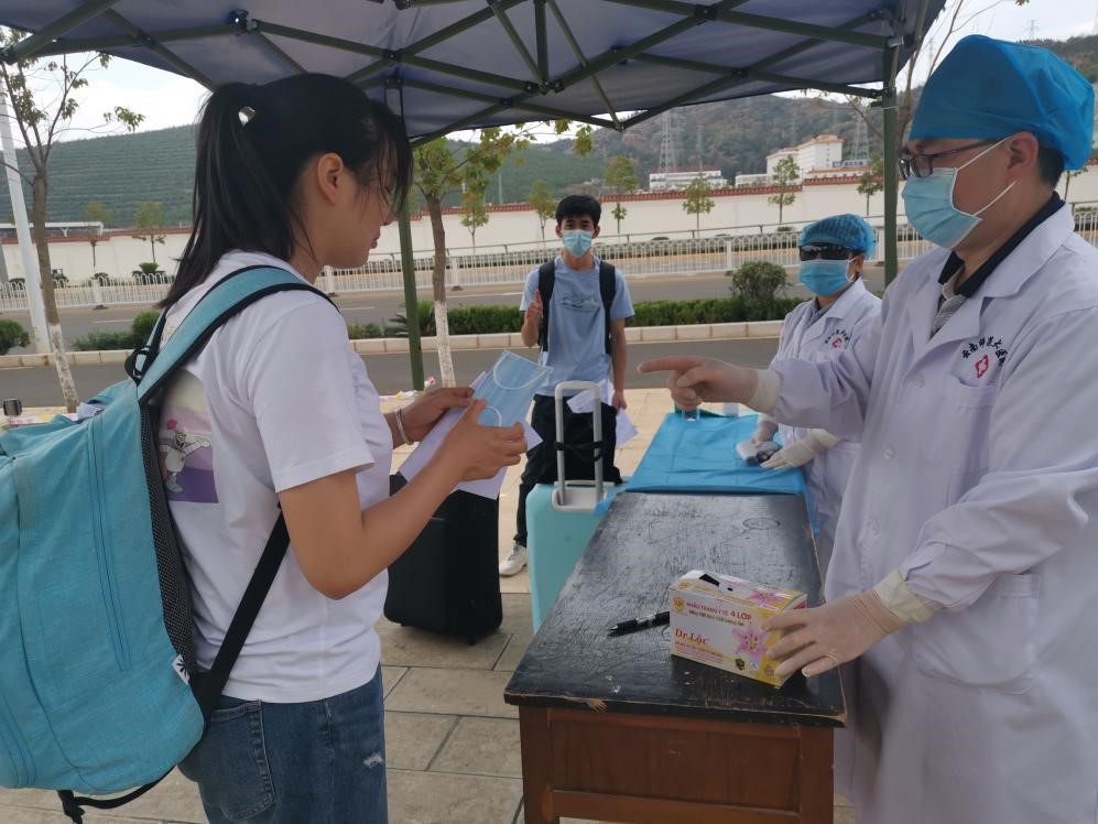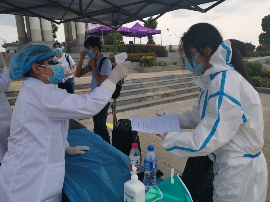 文友琪是美术学院设计学专业17级研究生,从四川坐高铁返校。“收到老师一对一的通知后,我买了高铁票。很开心能够回到学校,十分想念老师和同学,因为是毕业生,希望能够抓住最后的时光,好好珍惜在学校的日子。”