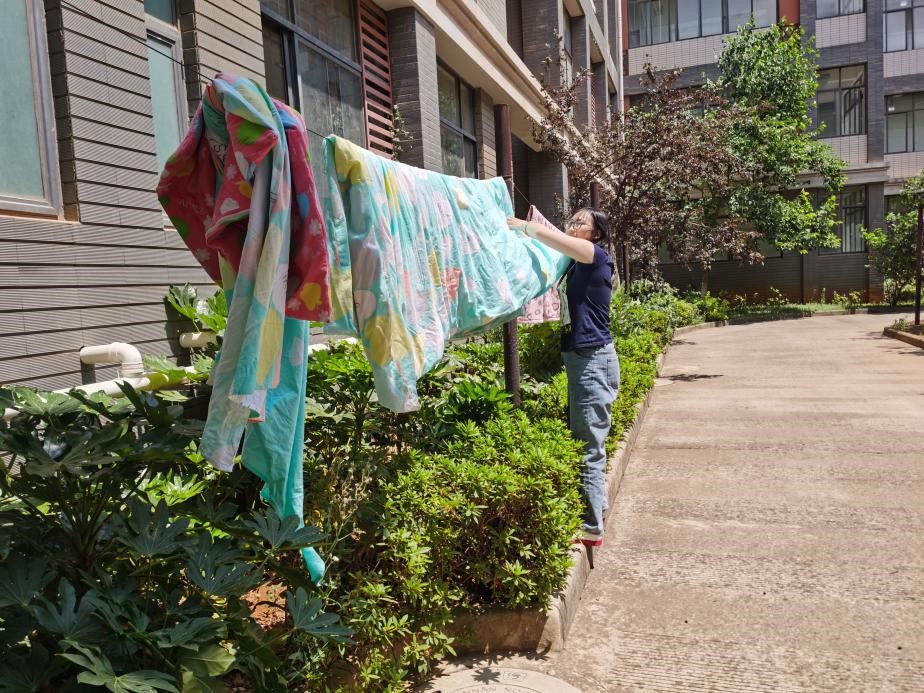 一回宿舍就看起了毕业论文的段明伟是体育学院体育教育训练学专业17级研究生,他来自保山腾冲,“回学校太激动了,学校的准备工作都非常仔细,学院还特意给每位返校的同学发了一盒牛奶,特别温馨。回到宿舍发现,宿管阿姨居然帮我们的植物都浇了水,宿舍也打扫了,很感动。”