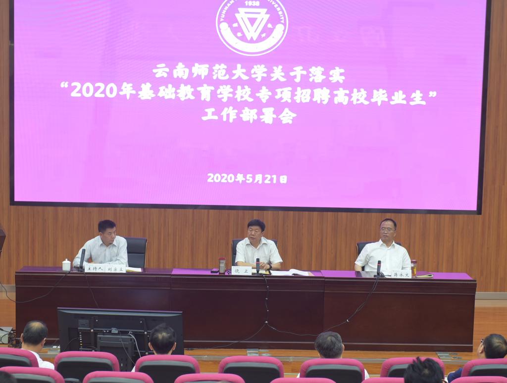 为贯彻“六保”要求,落实“六稳”工作,降低疫情对高校毕业生就业的影响,我省2020年决定面向全国应届高校毕业生专项招聘32870名中小学幼儿园教师。为落实好该项工作,实现fun88官网毕业生更高质量和更充分就业,5月21日上午,学校召开落实“2020年基础教育学校专项招聘高校毕业生”工作部署会,主会场设在呈贡主校区汇学楼2幢101报告厅,各学院(学部)和研究生培养单位设立分会场组织人员参加。