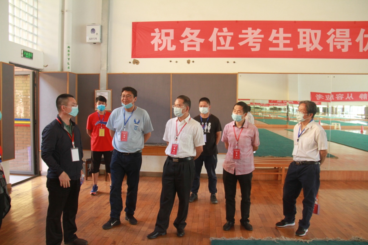 杨军伟副组长一行巡视了田径、篮球、武术等考试场地。重点查看了纪检工作人员的工作情况,在录像数据采集中心,调看了各考试项目的考试录像回放,就考生质疑考试成绩等相关问题进行询问,要求学校承办此次考试的考务部门要精心组织、科学安排,要坚定不移地贯彻执行国家和我省的招生考试政策,认真担负起主体责任,做到守土有责、守土负责、守土尽责,深入实施“阳光工程”。要全面加强考务工作队伍及考官队伍的教育和管理,严肃招生工作纪律,提高服务质量,为考生、家长提供优质高效的服务,确保2020年体育统考工作平稳实施,切实维护考试的公平公正。