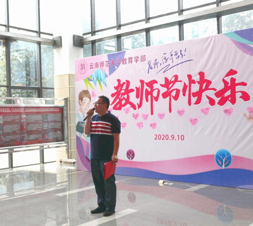 教育学部主任李长吉致辞,对全体老师致以节日的问候,并从中国传统文化的视角,为老师们解读了“什么是老师”,鼓励大家做一名好老师,统一思想、凝心聚力,以饱满的热情和昂扬向上的精神为学部的建设和发展贡献自己的力量。
