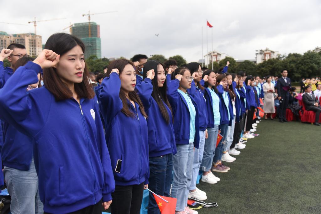 在庄严的升国旗仪式之后,校党委饶卫书记宣布开学典礼正式开始。