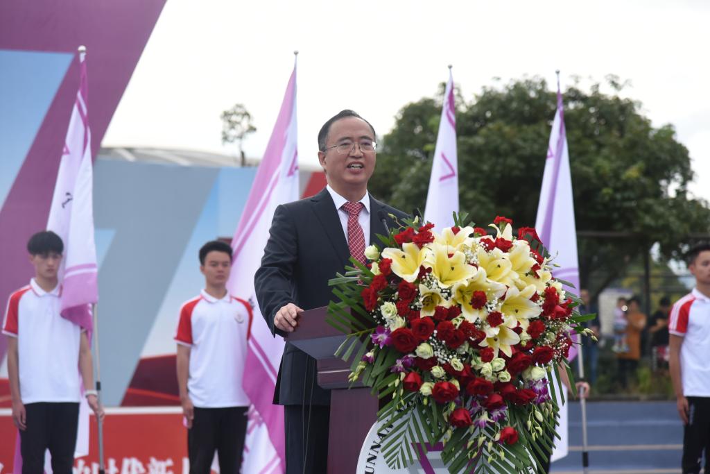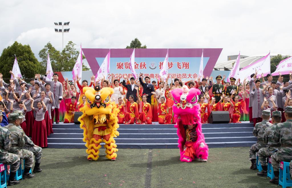 蒋永文校长首先致辞。蒋校长回顾了西南联大的光辉历史,并结合习近平总书记今年年初考察fun88官网西南联大旧址时的重要指示精神,对“天降大任,注定不凡”的2020级新生提出了三点希望:一是希望同学们坚实涵养家国情怀。作为社会主义的建设者和接班人,作为国家的希望和栋梁,需要认真思考自己的理想和目标,把小我融入大我,主动关心家国命运、时代变迁,主动承担起报效祖国的人生使命和社会责任。二是希望同学们坚定探索人生意义。要生活上学会独立,尽快找准定位、转换角色,积极适应大学的学习和生活;心理上学会独立,培养独立人格,保持积极乐观的阳光心态、养成良好的心理调节能力;思想上学会独立,明辨是非、自信自律,在走向自强独立的过程中,增长力量、完善人格、脚踏实地、逐梦前行。三是希望同学们坚决练就过硬本领。要把学习作为终身兴趣和习惯,喜欢学习、勤于学习、善于学习,学有所思、学有所悟、学有所成。同时,蒋校长希望全体新生在接下来的军训中端正态度、严守纪律、刻苦训练,以饱满的精神、昂扬的斗志投入到军训中,用青春和汗水铸就坚强的意志品格。