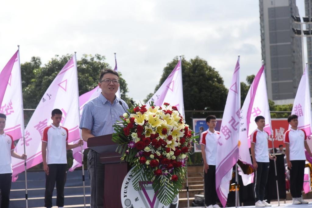 青年长江学者、生命科学学院尚轶老师作为青年教师代表发言。他鼓励新生们向在国家危难时刻忍辱负重、卧薪尝胆最终成为国家栋梁的西南联大先辈们学习,他们的故事是同学们触手可得的精神食粮。针对大学学习和生活,尚轶老师还为同学们提出了设立远大的目标、理论联系实际、加强体育锻炼等建议。他希望同学们牢记习近平总书记的殷殷嘱托,时刻牢记国家之需、民族之需、时代之需,用智慧和汗水浇灌青春、孕育希望、服务国家。