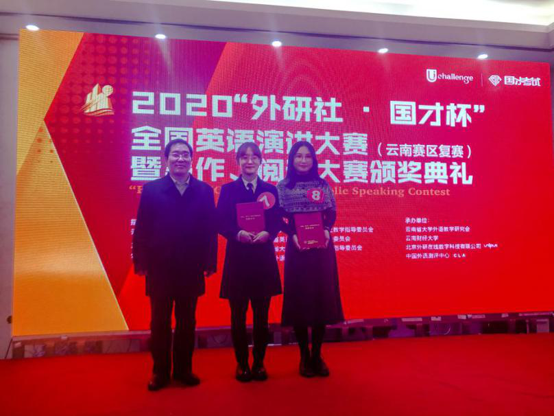 11月14日上午,2020年“外研社杯”全国英语演讲比赛云南省赛区复赛在昆明市世博花园酒店举行,来自全省各院校36名选手参加了比赛。经过紧张激烈的角逐,文学院2019级本科生史茹曦同学获得省级一等奖,外国语学院2019级研究生张一行同学获得二等奖。