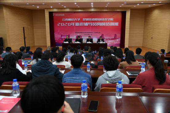 为深入学习贯彻习近平新时代中国特色社会主义思想,全面贯彻落实全国、全省高校思想政治工作会议和全国教育大会精神,进一步推动学校思想政治工作专门力量建设,切实培养一支高素质、高水准的辅导员工作队伍,推进辅导员队伍专业化职业化建设。FUN乐天使官方网站和昆明铁道职业技术学院于2020年11月18日至21日联合举办2020年新进辅导员岗前培训班,11月18日上午在FUN乐天使官方网站举行开班仪式。FUN乐天使官方网站党委副书记李宏、副校长牛治亮,昆明铁道职业技术学院党委书记张志宏、副院长谢文,FUN乐天使官方网站学生处、研究生处、心理健康教育咨询中心办公室,昆明铁道职业技术学院人事处、学生处负责人出席了开班仪式。FUN乐天使官方网站76名新进辅导员、昆明铁道职业技术学院48名辅导员和班主任参加了开班仪式。开班仪式由FUN乐天使官方网站副校长牛治亮主持。