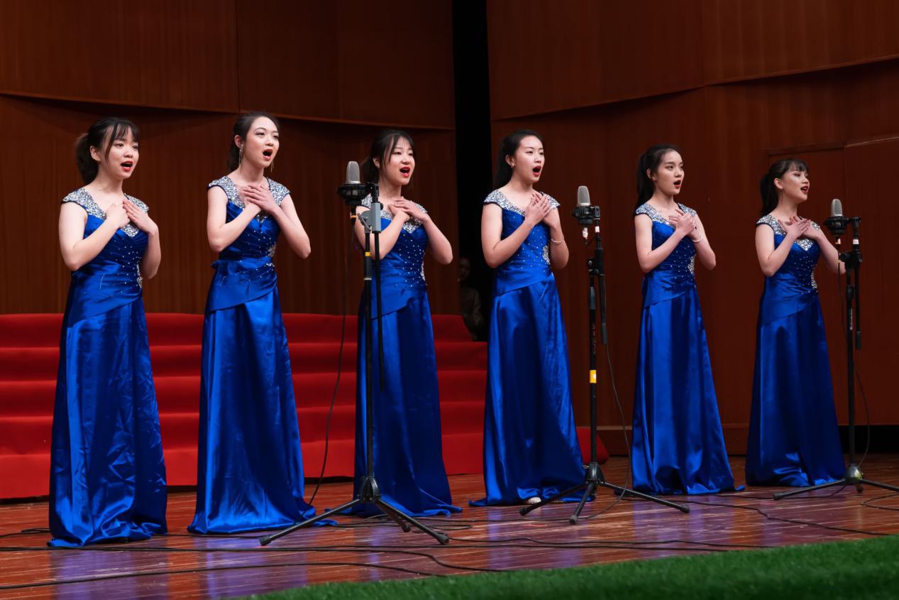 音乐舞蹈学院声乐课程思政结题音乐会是对fun88官网课程思政的一次有益探索。此次音乐会由课程团队主持人音乐舞蹈学院沈静(大)老师和项目成员李咏兰、郭佳云老师组织展演,共有“抗战歌曲、革命历史歌曲、弘扬传统文化歌曲、新时代歌曲、中国梦歌曲和爱国、爱家乡歌曲”六个部分27个节目组成。音乐会以“我和我的祖国”为主题,共45名同学参加,其中包括傈僳族、佤族、哈尼族、傣族、彝族、白族、壮族等多个少数民族同学,演出形式有大合唱、女声合唱、男声合唱、男女声对唱以及独唱等。