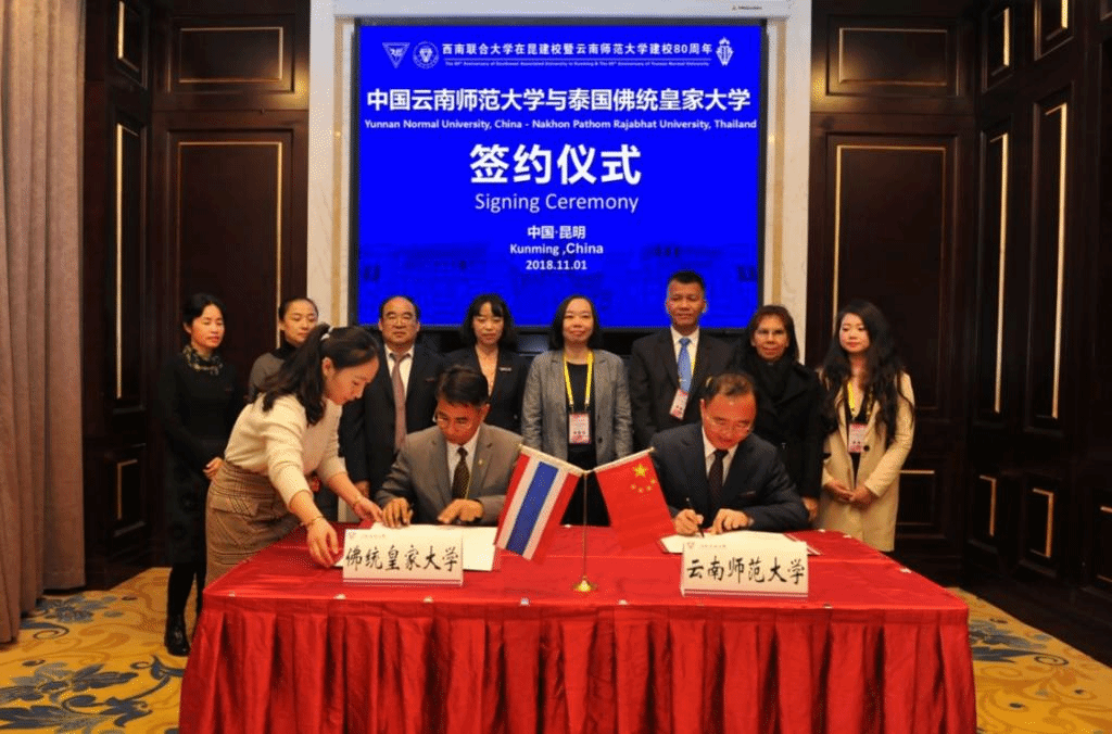 与海外高校及各类教育科研机构签署协议48份,其中与“一带一路”沿线国家高校签署协议20份,与罗马尼亚苏恰瓦史蒂芬大帝大学共建的“中欧教育文化交流中心”揭牌。以80周年校庆为契机,邀请了来自16个国家的35所学校与合作机构104位国(境)外高校及教育机构的嘉宾参会,与4所国外院校签署合作协议,为“昆明-清迈友好城市研究中心”。