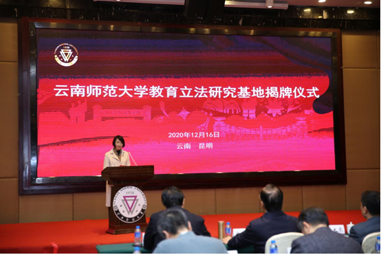 云南省人民政府教育督导团总督学杨红琼致辞,希望各位专家学者发挥渊博学识,走进云南、相知云南、研究云南、把脉云南,为推进云南教育法治建设和社会和谐发展建言献策。