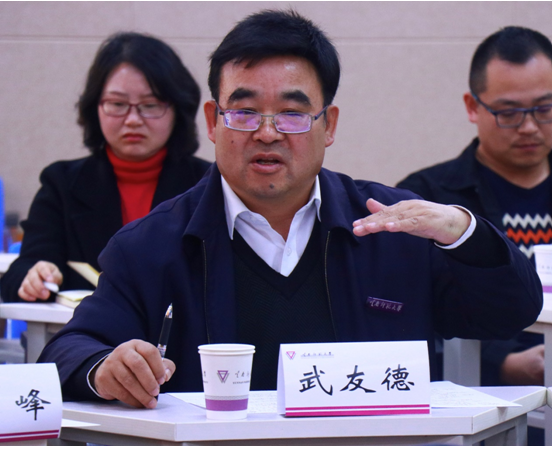 武友德副校长在表态发言中指出,学校高度重视国家语言文字推广基地建设,为了基地下一步工作能正常开展,在组织机制和管理机制上都严格按照教育部国家语言文字推广基地标准来建设;组织机制上成立理事会,由校长蒋永文担任理事长,并聘请了各方面专家在顶层设计上给基地建设提供支持;管理机制上,由蒋永文校长担任基地主任,同时,学校党委专门设置了处级岗位和科级岗位;项目实施过程中广泛吸收多方意见,对实施方案不断优化。下一步,将整合全校资源全力支持微课程建设,以此来提升整个云南省的普通话质量,最后起到推广和示范作用。