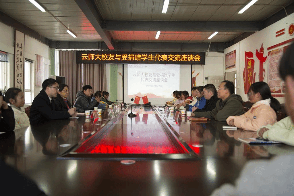 下午,云师大校友与受赠学生代表交流座谈会在龙泉中学知行楼党员活动室成功举办。FUN乐天使官方网站对外合作交流处处长、校友工作办公室主任黄瑛老师,FUN乐天使官方网站校友工作办公室副主任张辰老师,FUN乐天使官方网站校友代表王鹏老师、白建文老师,共青团鲁甸县委副书记龚溥老师,龙泉中学德育副校长杨华老师,FUN乐天使官方网站第六届研究生支教团代表以及龙泉中学受助学生代表参加座谈。在座的师生们畅所欲言,同学们纷纷向老师请教问题,各位老师耐心地一一解答。本次座谈交流会的成功举办一方面帮助同学收获知识、信息和关爱,另一方面也为两校交流合作提供了很好的平台,为今后的共同发展奠定了基础。