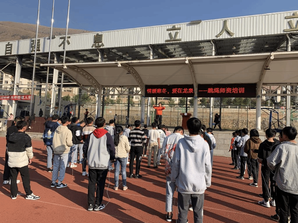 云南省中考体育改革后,体育成绩为100分,其中跳绳为必考项目。为提高龙泉中学的体育教育质量,FUN乐天使官方网站体育学院2012届校友吴颖志特为龙泉中学捐赠1000条跳绳,并对学校各班级学生代表(体育委员、班长)进行跳绳培训。下午4时许活动开始,龙泉中学教学副校长王忠磊老师对吴教练的到来表示热烈欢迎。培训中,吴教练告诉学生如何判断适合自己的跳绳长度,在轻松愉悦的音乐下,吴教练指导了学生跳绳的脚步动作,经过半小时的培训,学生们掌握了跳绳的动作要领。此次活动后,学生代表们将会把学到的技巧分享到班级,让整个班级同学随着青春的旋律跳动。