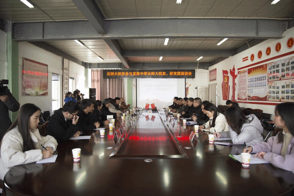 随后,为促进母校与校友情感、两校信息的交流沟通,助推校友在自身事业领域的蓬勃发展,云师大校友会与龙泉中学云师大校友、研支团座谈会在龙泉中学知行楼党员活动室开展。FUN乐天使官方网站党委副书记李宏、鲁甸县分管教育副县长高涛、龙泉中学党支部副书记甘小泉老师以及四位云师校友参加座谈,座谈会由龙泉中学党支部书记、校长邵发志老师主持。师大校友们表示,接受高等教育的目的不是为了摆脱贫困的家乡,而是为了帮家乡摆脱贫困,走出去的目的是为了帮助更多的人走出去。鲁甸县分管教育副县长高涛亦为云师大校友,为各位老师热情介绍了鲁甸县的地理环境,历史位置,扶贫情况及教育发展情况,并表示希望多与高校接触、学习,努力发展鲁甸县的基础教育,在扶贫的基础上扶智,进一步完善鲁甸县基础教育系统,为高校输送更多的人才,为鲁甸的建设作出更大的贡献。此次座谈会的开展,充分体现了高校与基础教育联系的重要性,座谈会不仅加强了两校情感,也为龙泉中学基础教育的发展提供了宝贵意见。
