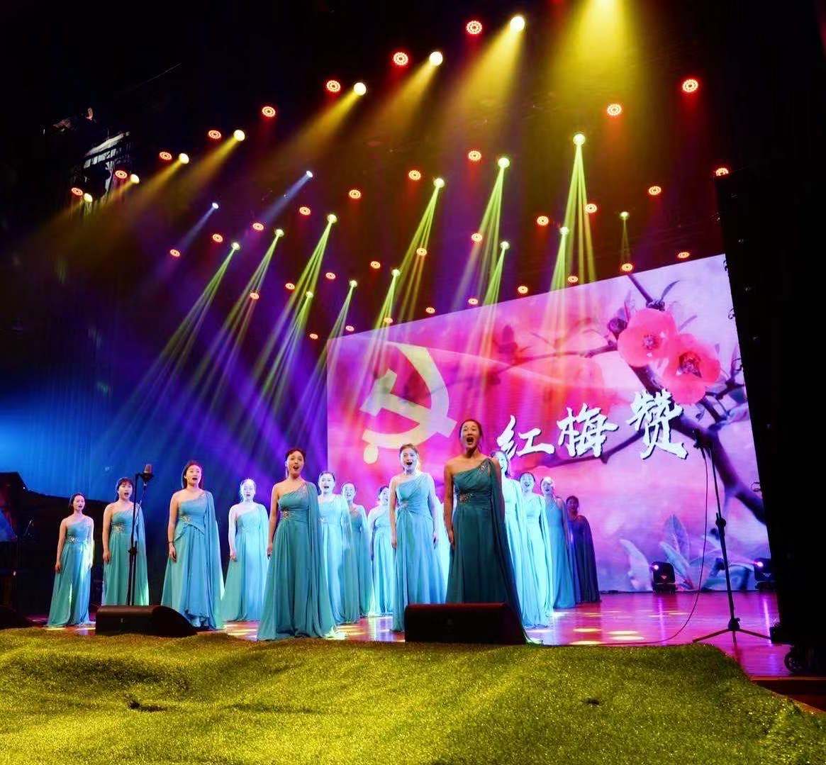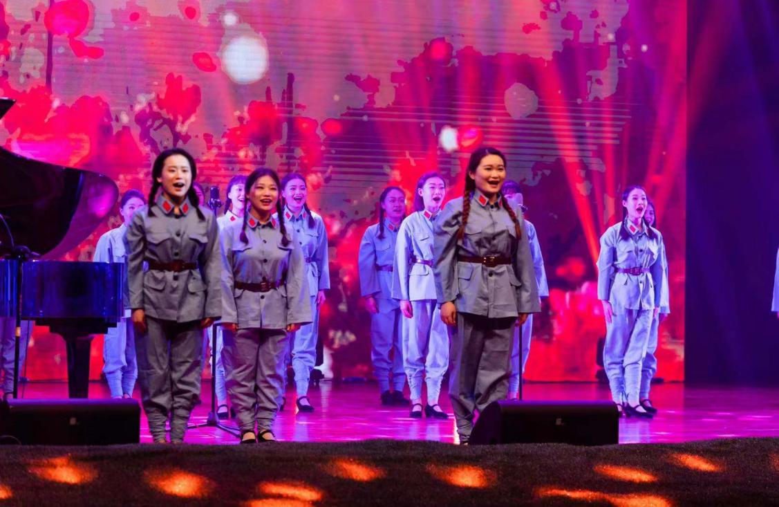 女声合唱《绣红旗》、女声独唱《红梅赞》选自歌剧《江姐》,《绣红旗》生动讲述了江姐等狱中女同志尽管遭受到各种各样的严刑拷打,仍保持对党的一片忠诚,表达了中华儿女热爱党热爱祖国的赤心;《红梅赞》表现了梅花坚贞不屈、润物无声的品格,正是我们中华民族不屈不挠、顽强拼搏的精神写照。