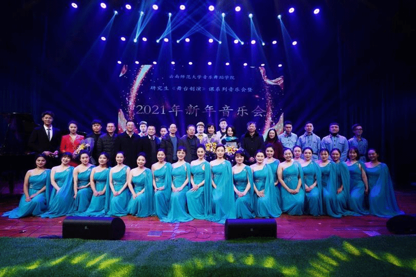 音乐会最后,总策划何纾副院长和《专业创演课》授课教师韩萍教授与所有演出学生一同谢幕,并向所有观表达了新年的美好祝愿。