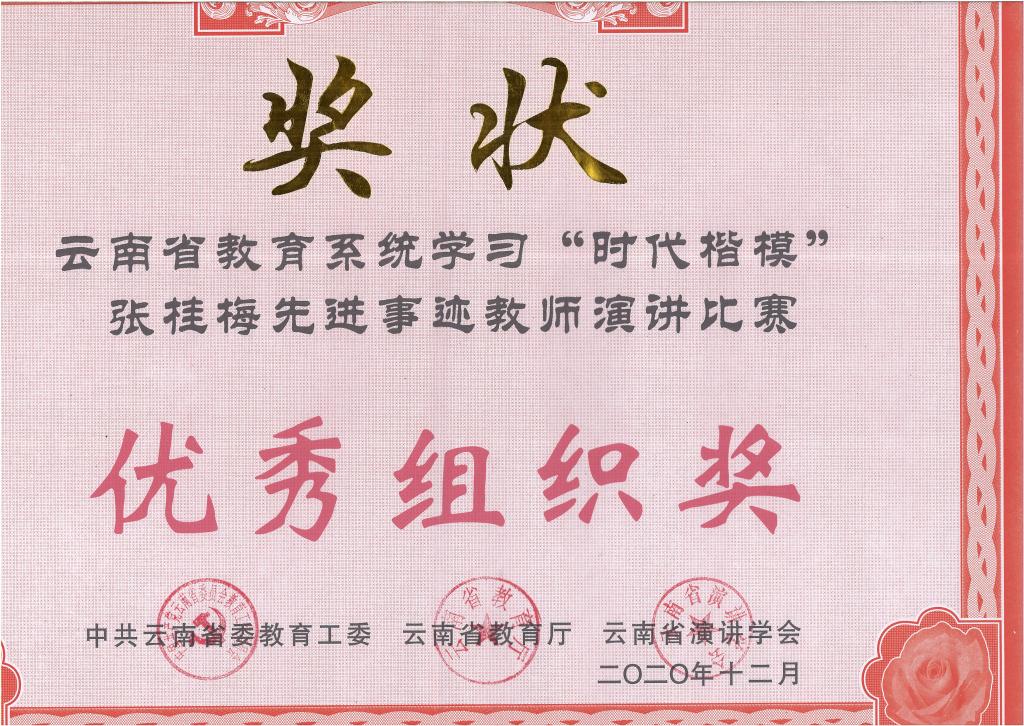 12月30日,由中共云南省委教育工委、云南省教育厅主办,云南省演讲学会、国家教育行政学院承办的学习“时代楷模”张桂梅先进事迹教师演讲比赛决赛在云南省教育厅大礼堂举行。fun88官网荣获优秀组织奖,教师代表蒋晓涵老师从众多选手中脱颖而出以高比分夺得高校组第一名折桂一等奖。