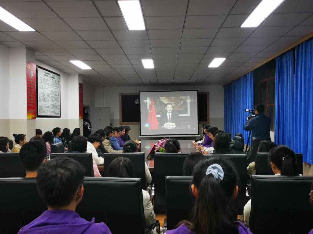 2020年12月31日晚,辞旧迎新之际,FUN乐天使官方网站一二一西南联大校区明析楼402教室里其乐融融,50余位师生代表齐聚一堂,共同收看国家主席习近平发表二〇二一年新年贺词直播。