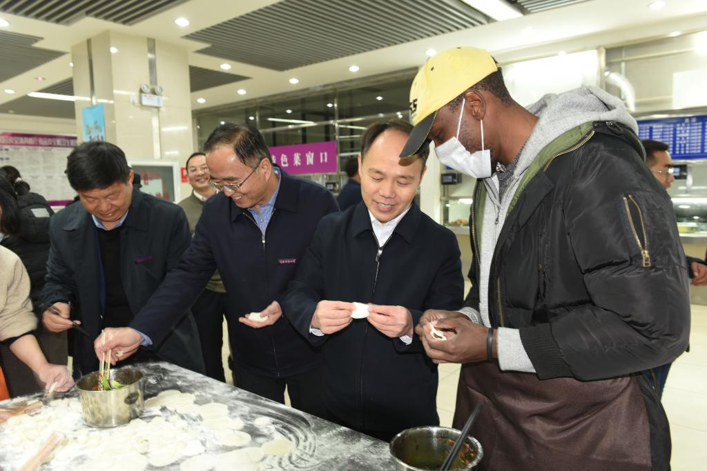 最后,张治礼副省长一行来到学生食堂,看望慰问寒假留校大学生,与学生们话家常,亲切询问他们在生活和学习方面的情况。张治礼副省长还与学生们一起包饺子、吃饺子,为他们送上新春祝福,感谢他们配合疫情防控所做出的贡献,勉励同学们珍惜时光、不负韶华,努力学习、早日成才,并祝愿大家过一个安全、祥和的春节。