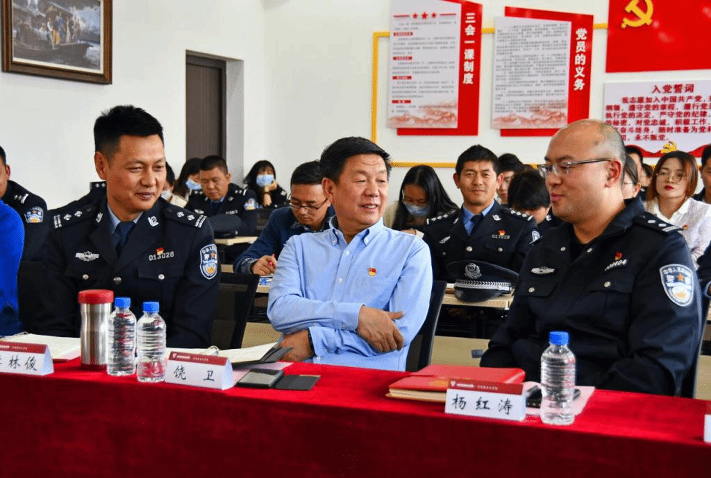 呈贡区公安局政委杨红涛在讲话充分肯定警校党支部联学共建的创新模式,表示区公安局将大力支持该项工作的深入开展,并希望加强与学院的合作,发挥学院政治理论教育资源优势,进一步支持公安系统的政治理论教育工作