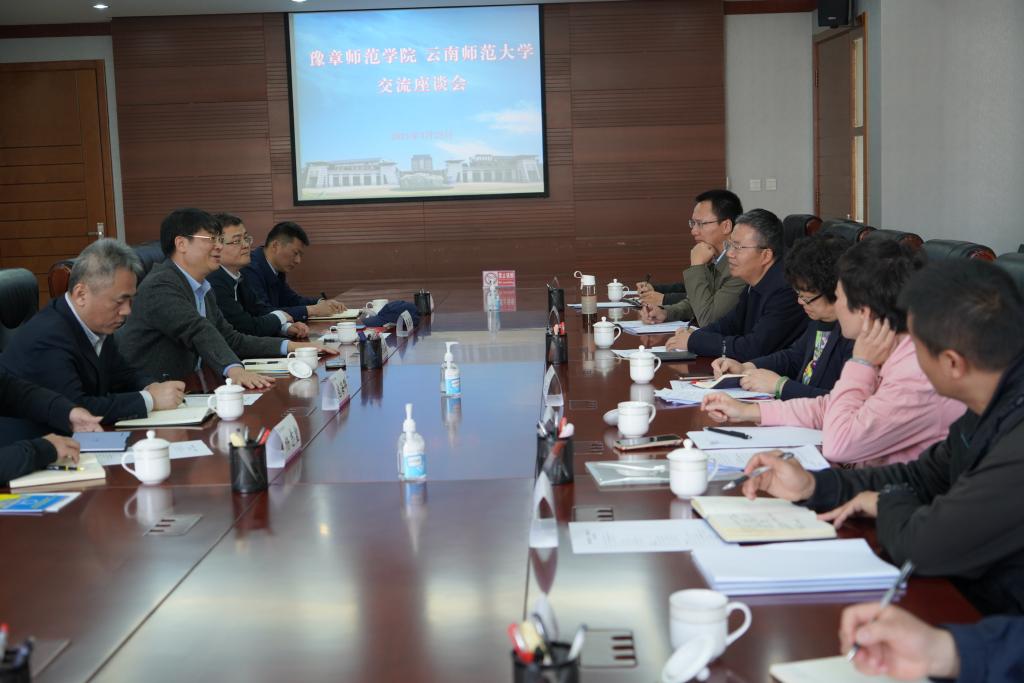 3月25日上午,豫章师范学院纪委书记谢谋盛、副校长张海涛一行五人到访fun88官网考察交流。fun88官网党委委员、副校长兼组织部部长蔡金红,纪委纪检处、学生处、教务处、就业处、地理学部、体育学院、图书馆等单位负责人参加座谈。座谈会由蔡金红副校长主持。