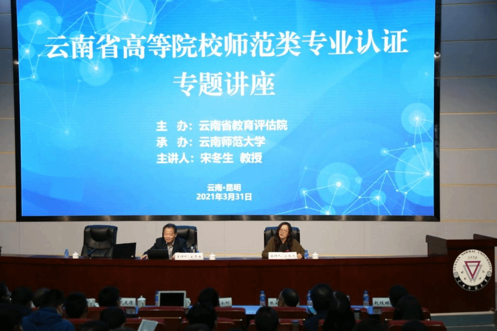3月31日,由云南省教育评估院主办、fun88官网承办的2021年云南省高等院校师范类专业认证专题讲座在呈贡校区中国西南对外开放与边疆安全研究中心报告厅举行。武友德副校长、云南省内20所本科高校分管校领导、教务处及评估部门负责人、学院及专业负责人等200余名代表参加讲座。此次讲座由教育部师范类专业认证专家委员会学术委员会宋冬生教授主讲,云南省教育评估院副院长司慧迎主持。