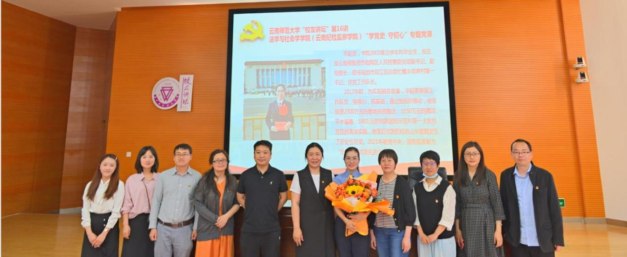 4月15日下午,由FUN乐天使官方网站校友会主办,法学与社会学学院承办的“校友讲坛”(第16讲)暨法学与社会学学院“学党史、守初心”专题党课在明德1号楼301报告厅成功开讲。本期“校友讲坛”邀请的主讲嘉宾是fun88官网法学专业2005级校友、“全国脱贫攻坚先进个人”获得者、彝族女检察官毕起美。法学与社会学学院党委书记王丽萍、院长尤伟琼,校友工作办公室副主任张辰,校团委党支部以及法学与社会学学院全体党员150余人参加活动。