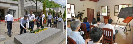 参加活动的全体人员在“一二·一”运动四烈士墓前开展了缅怀先烈仪式,在西南联大复原教室内聆听了西南联大博物馆馆长李红英结合习近平总书记考察西南联大旧址重要指示精神所作的《西南联大教育救国守初心》的微党课,全体党员重温了入党誓词,参观了《刚毅坚卓——西南联大历史展》,并在西南联大仿制门前合影留念。