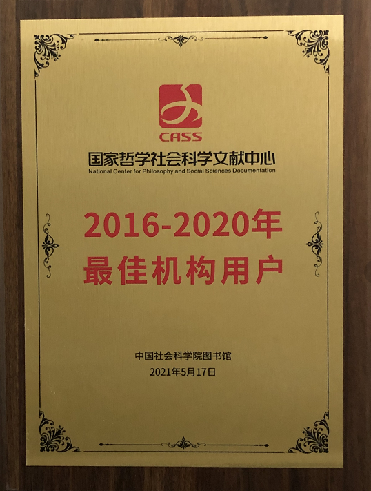 2021年5月17日,正值习近平总书记在国家哲学社会科学工作座谈会上发表重要讲话五周年之际,中国社会科学院举办了“国家哲学社会科学文献中心建设成果发布会”。会议评选出了2016—2020年最佳机构用户、最受欢迎期刊。fun88官网图书馆因对“文献中心”资源宣传推广效果好、文献资源使用量位列全国机构用户前茅,荣获“最佳机构用户”称号。会议还发布了《国家哲学社会科学文献中心建设成果报告(2016—2021年)》《国家哲学社会科学文献中心学术期刊数据库用户关注度报告(2020年)》。