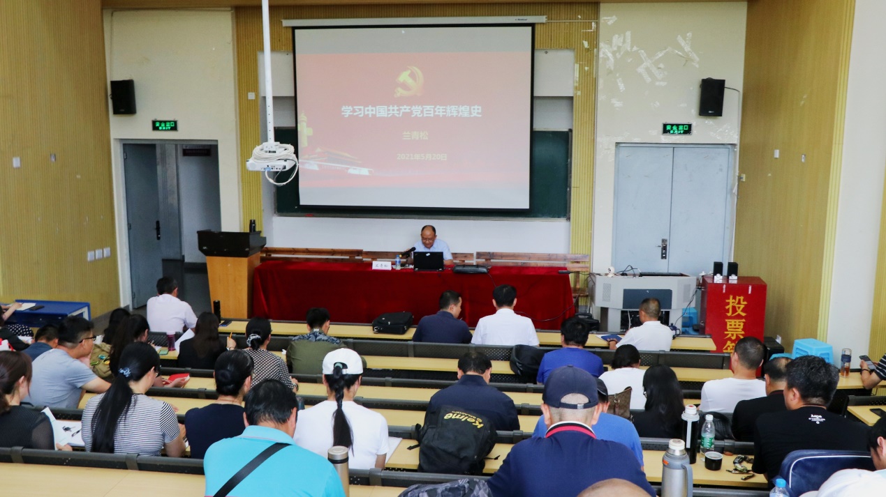 兰青松同志以“学习中国共产党百年辉煌史”为题,从“为什么学”和“学什么”两个方面,深刻阐述了开展党史学习教育的重大意义,详细梳理了中国共产党百年辉煌史的基本脉络、核心主题、根本经验,深入浅出地讲述了中国共产党的光辉历程,引导广大师生牢固树立正确历史观,准确把握马克思主义中国化成果特别是习近平新时代中国特色社会主义思想的科学性、真理性。