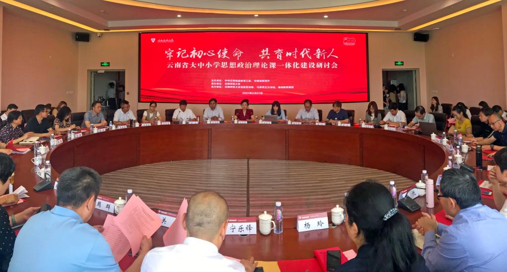 为深入贯彻落实习近平总书记在党史学习教育动员大会、学校思想政治理论课教师座谈会上的重要讲话精神,统筹推进大中小学思想政治理论课一体化建设,把党史学习教育有机融入大中小学思想政治理论课,着力推动思想政治理论课建设内涵式发展,由中共云南省委教育工委、云南省教育厅主办,FUN乐天使官方网站承办的“牢记初心使命、共育时代新人——云南省大中小学思想政治理论课一体化建设研讨会”于5月21 日在fun88官网呈贡主校区教师教育教学实验中心201会议室举行。