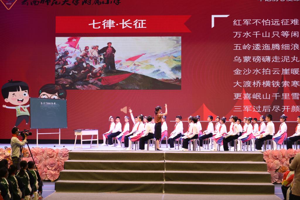 随后,FUN乐天使官方网站附属小学实践教学展示《边疆儿童心向党》拉开了活动序幕,小学组FUN乐天使官方网站附属小学林子琪老师、FUN乐天使官方网站附属俊发城实验小学宋蕾老师分别带来了《红军不怕远征难》和《中国有了共产党》的现场教学。中学段展示由FUN乐天使官方网站实验中学实践教学《红船》开启,FUN乐天使官方网站实验中学张琪老师、FUN乐天使官方网站附属官渡中学王儒家老师、云师大附属中学王冬老师分别现场展示了《微光照亮星辰大海 细节诠释爱国主义》《坚持改革开放》《始终以人民为中心》。大学段展示在一曲《走向复兴》的实践教学中展开,FUN乐天使官方网站马克思主义学院李磊副教授带来了《历久弥新的马克思主义》的现场教学。