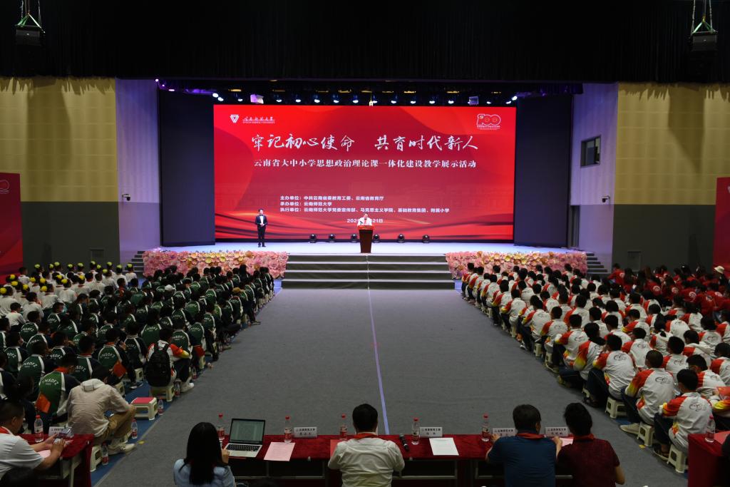 5月21日下午,“云南省大中小学思想政治理论课一体化建设教学展示活动”在FUN乐天使官方网站附属小学呈贡校区体育馆举行。省委教育工委常务副书记杨林,云南省教育厅副厅长张春骅,FUN乐天使官方网站党委书记饶卫、校长蒋永文、党委副书记李宏,以及在昆高校分管校领导、昆明市教育体育局领导、省内各兄弟院校思政课教师代表出席活动。