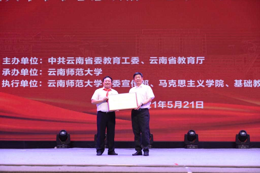 活动最后,云南省教育厅副厅长张春骅向FUN乐天使官方网站授牌“云南省大中小学思政课一体化建设协同创新中心”,校党委书记饶卫接牌。该中心将重点对全省大中小学思政课教师专业发展进行研究、咨询和服务,构建云南省大中小学思政课教师培养培训机制,组织大中小学思政课教师交流研修活动,提升思政课教师专业化水平,推动新时代思政课改革创新。
