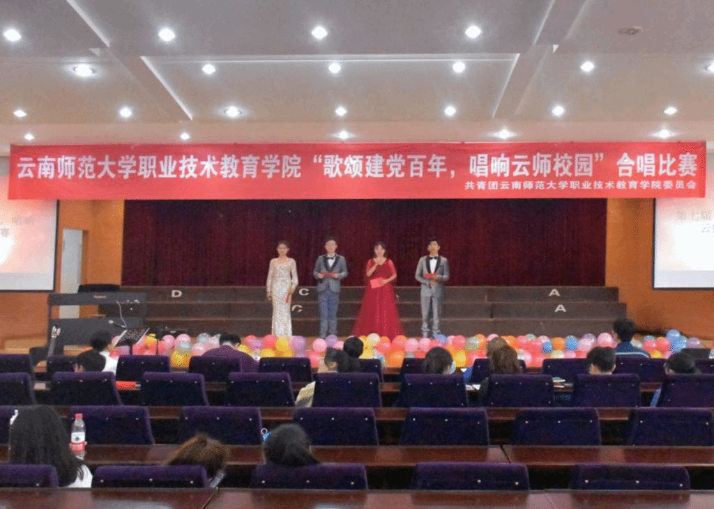 为庆祝中国共产党成立100周年,激发同学们爱党爱国爱校的热情,6月6日下午,职业技术教育学院团委在一二一西南联大校区田家炳教育书院报告厅举办“歌颂建党百年,唱响云师校园”合唱比赛。本次比赛邀请到中国音乐家协会会员(作曲家)唐天尧、云南文化艺术职业学院教学总监王蒙、云南大学昌新国际艺术学院青年教师戴静、云南文化艺术职业学院声乐教师廖今以及学院团委书记刘东东老师担任评委。