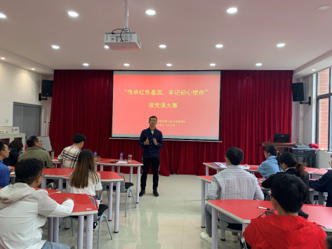 为从党的百年伟大奋斗历程中汲取继续前进的智慧和力量,深入学习贯彻习近平新时代中国特色社会主义思想,巩固深化“不忘初心、牢记使命”主题教育成果,全面开展党史学习教育,激励全院师生满怀信心迈进全面建设社会主义现代化国家新征程。学院党委围绕立德树人的根本任务,结合学院“四轮驱动”工程,充分发挥党员的引领、示范和带头作用,坚持以讲促学、以知促行,决定举办“传承红色基因、牢记初心使命”微党课比赛。6月28日下午,“传承红色基因、牢记初心使命”微党课比赛决赛在学院“党员之家”举行,比赛由物理与电子信息学院党委书记王世波同志、团委书记陈阁同志、教工党支部蔡武德同志、教工党支部王静同志担任评委,组织员梁烨同志担任主持。