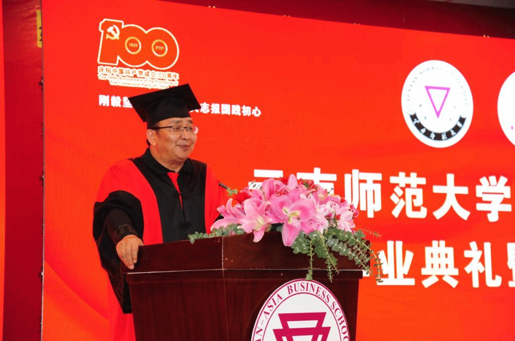 刚毅坚卓启航程,矢志报国践初心。6月26日,泛亚商学院2021年毕业典礼暨学位授予仪式在一二一校区田家炳报告厅举行。校长蒋永文教授、校长办公室主任杨洪副教授、研究生院院长骆华松教授、研究生处处长黄海涛教授、学院全体领导班子成员、研究生导师、教师、2020届及2021届共150名毕业生代表参加了典礼。