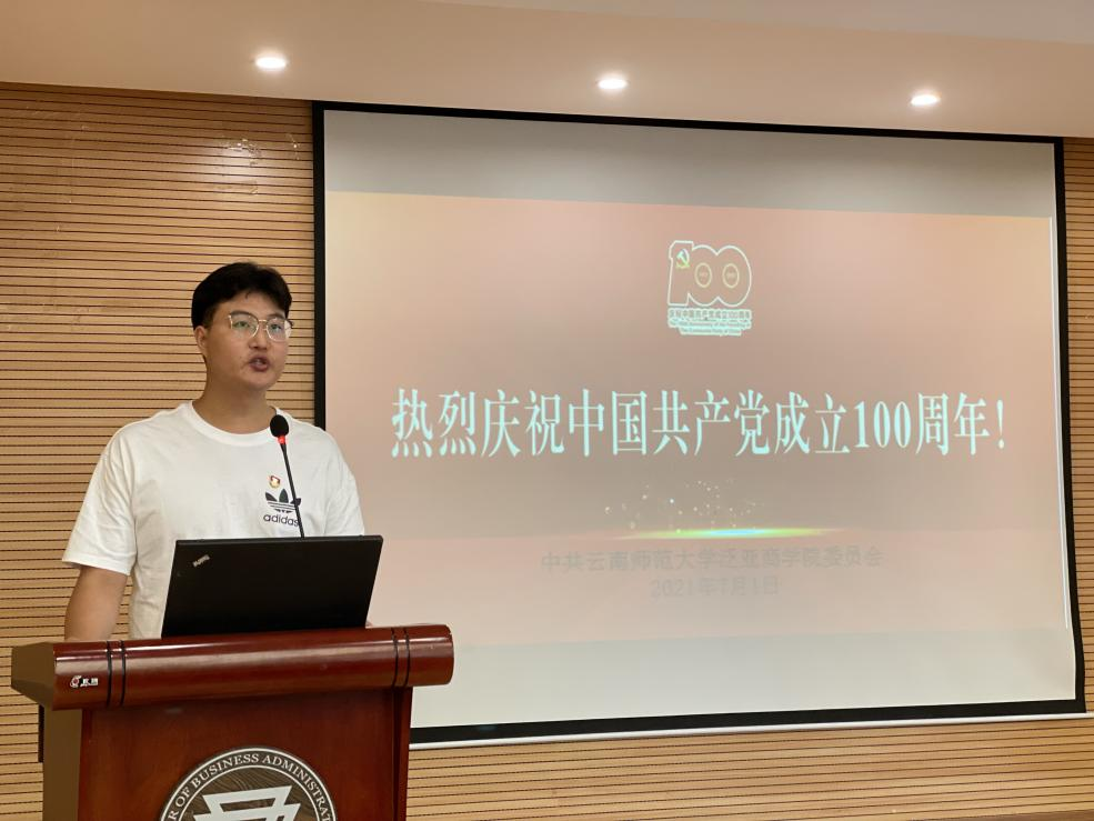 同时,学院为7月入党的杨永生同志过政治生日,杨永生同志分享了自己的入党经历,也对同学们寄语了期望。张云保同志作为2021年新发展党员代表发言,在特殊的日子许下承诺,将为社会主义建设贡献自己的力量,为实现共产主义奋斗终身。