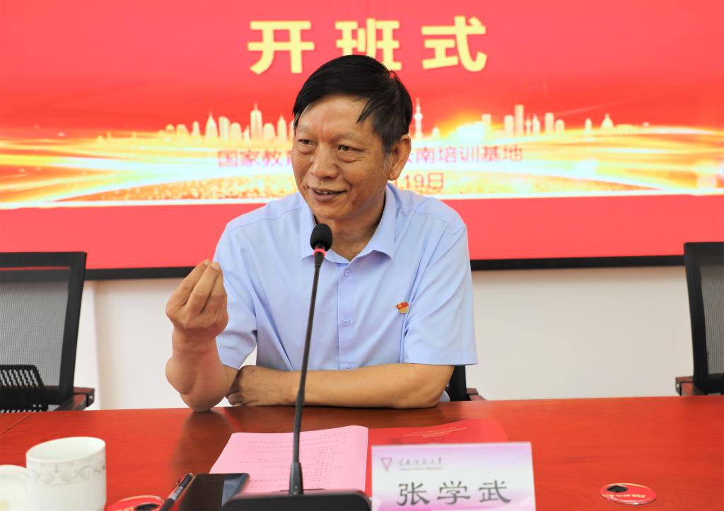 玉溪师范学院党委书记张学武在动员讲话中强调,学校党委高度重视此次研修班的举办,在西南联大的故园,体会西南联大“刚毅坚卓”的精神。他指出,新教师要讲政治,要坚定立场,切实把增强“四个意识”、坚定“四个自信”、做到“两个维护”落到行动上;要深刻领会此次研修班对学校发展的重要意义,要立志成为新时代“四有好老师”;要深刻理解教师职业特点,增强使命感和责任感,努力探索教育规律,充满激情地投入到教书育人的神圣事业中去;要树立科学精神,提高科研本领,有所发现、有所创新,在自己的研究领域立志高远。他希望参训学员珍惜机会,明确职责,转变角色,虚心学习,取长补短,真正做到学有所得,学有所获,学有所成。