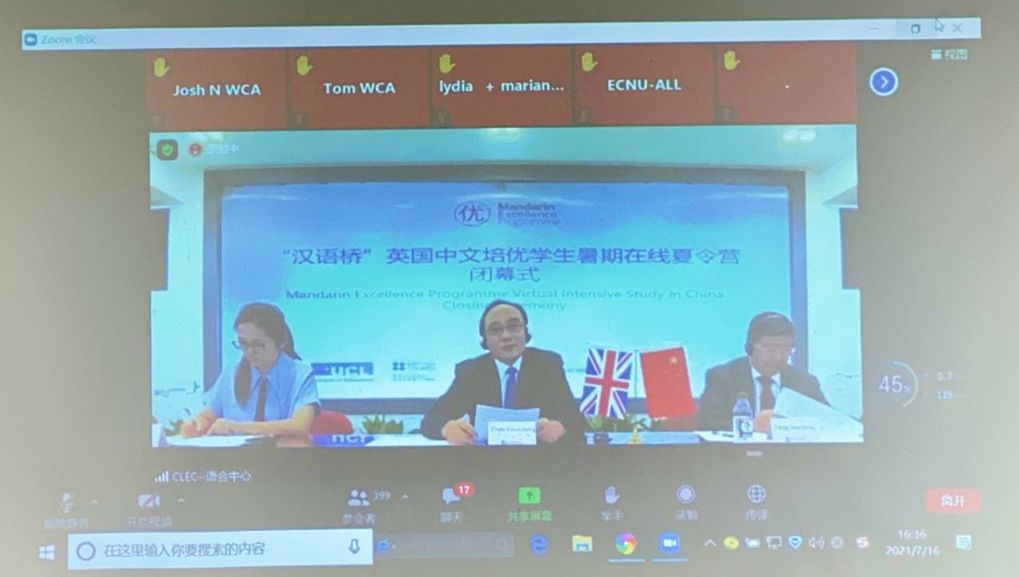 7月16日,2021年“汉语桥”英国“中文培优”项目学生夏令营闭幕式在线上举行。教育部中外语言交流合作中心主持闭幕式第一阶段,FUN乐天使官方网站国际汉语教育学院作为项目承办方之一参加,并在闭幕式第二阶段开通直播分会场,举办了结营典礼。