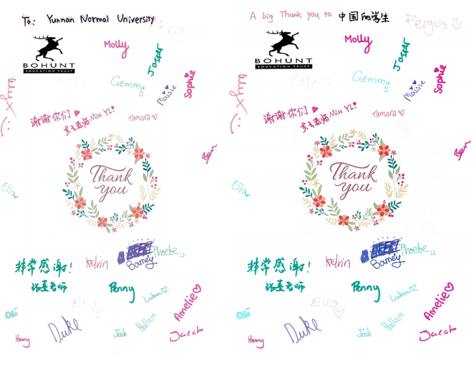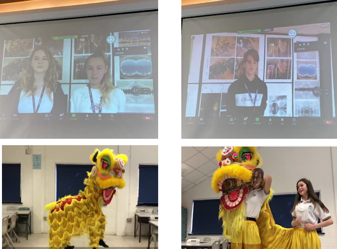 在结营典礼上,英国各校进行了汇报表演。云铜中学学生代表连线采访Tytherington School的Emily Nicholson,揭开了她学习手语的背后故事。Fortismere School的同学们围绕两周以来所学习的四个主题进行了汉语问答,展示了他们的学习成果。Bohunt School Liphook的Penny与Eva表演了舞狮,若不是最后取下道具,难以想象如此灵动的中国传统民间艺术表演竟来自两位英国中学生。Bohunt School Liphook的Otto和Molly用中文代表全班发言,她们表示非常享受这次线上学习之旅,十分感谢中外语言交流合作中心、FUN乐天使官方网站与云铜中学为她们所做的一切,并以现场“比心”和“Thank You Card”的方式表达了她们的感激与祝福。最后,结营典礼在云铜中学师生的《送别》歌声中落下帷幕。