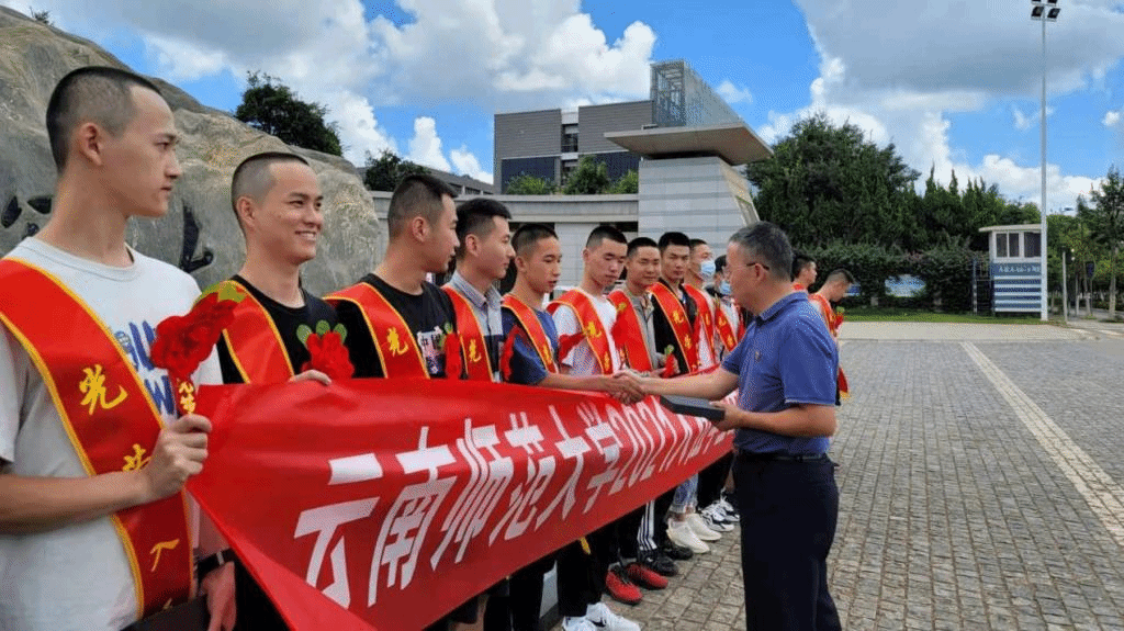 9月6日中午,蔡金红副校长在呈贡主校区主持 “FUN乐天使官方网站2021下半年入伍学生出征仪式”。学生处、武装部相关职能部门负责人参加了此次仪式。