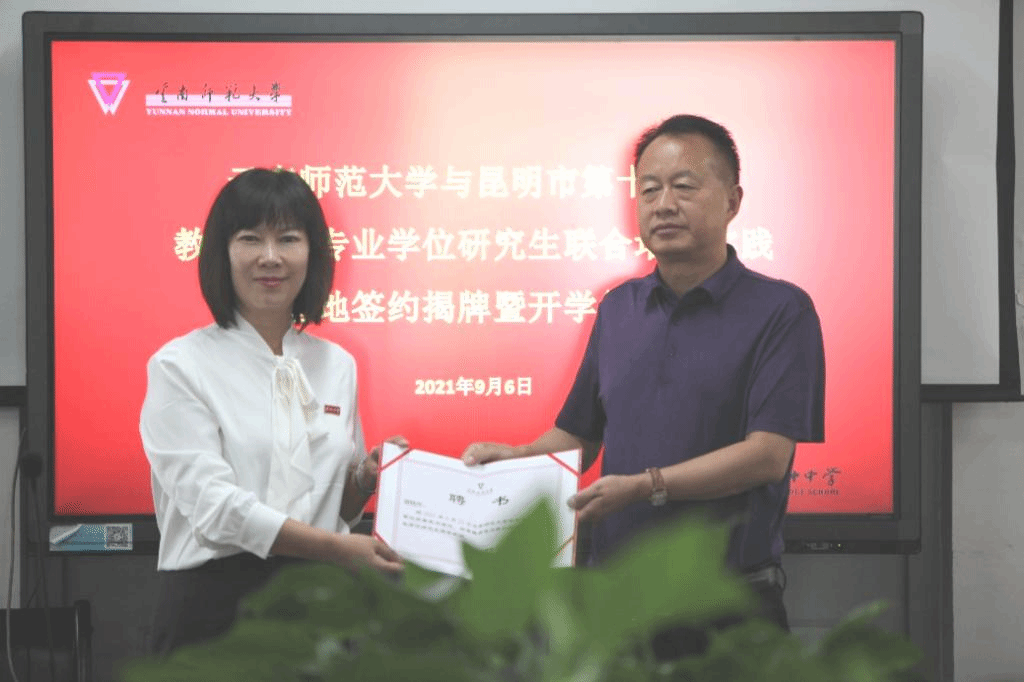 随后,研究生院骆华松院长和昆十中谢晓玲校长共同签署了《共建教育硕士专业学位研究生联合培养实践基地协议》。研究生院罗利佳副院长宣读昆明市第十中学谢晓玲等27名教师遴选为FUN乐天使官方网站校外教育硕士专业学位研究生指导教师的决议,安学斌副校长为新遴选的导师代表颁发了聘书。