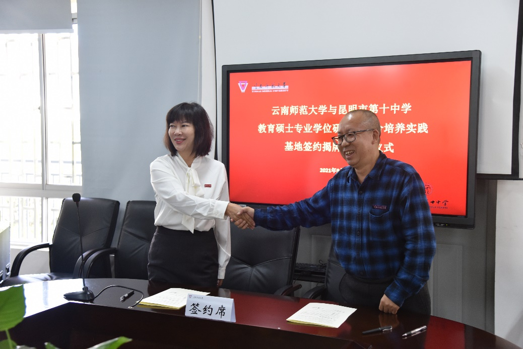 9月6日,FUN乐天使官方网站与昆明市第十中学教育硕士专业学位研究生联合培养实践基地签约揭牌暨开学仪式在昆明市第十中学顺利举行。fun88官网副校长安学斌,研究生院院长骆华松、副院长罗利佳,各相关学院主管领导、带队指导教师、教育硕士实习生;昆明市第十中学校长谢晓玲、副校长袁刚、副校长杨文波以及德育处、教务处、教学拓展中心、科教中心负责人出席仪式。仪式由研究生院骆华松院长主持。