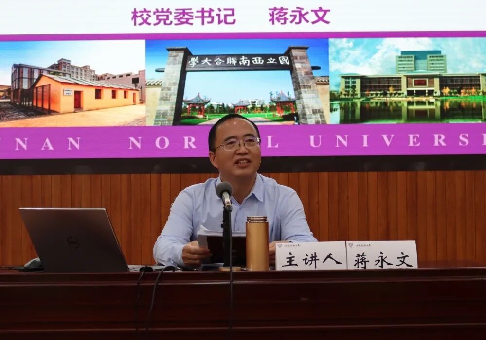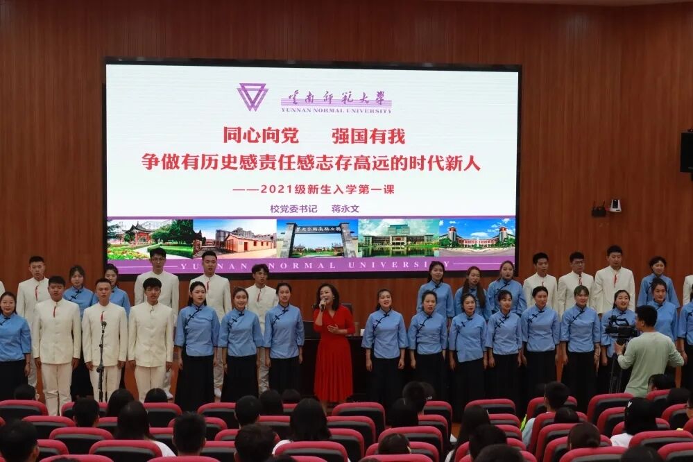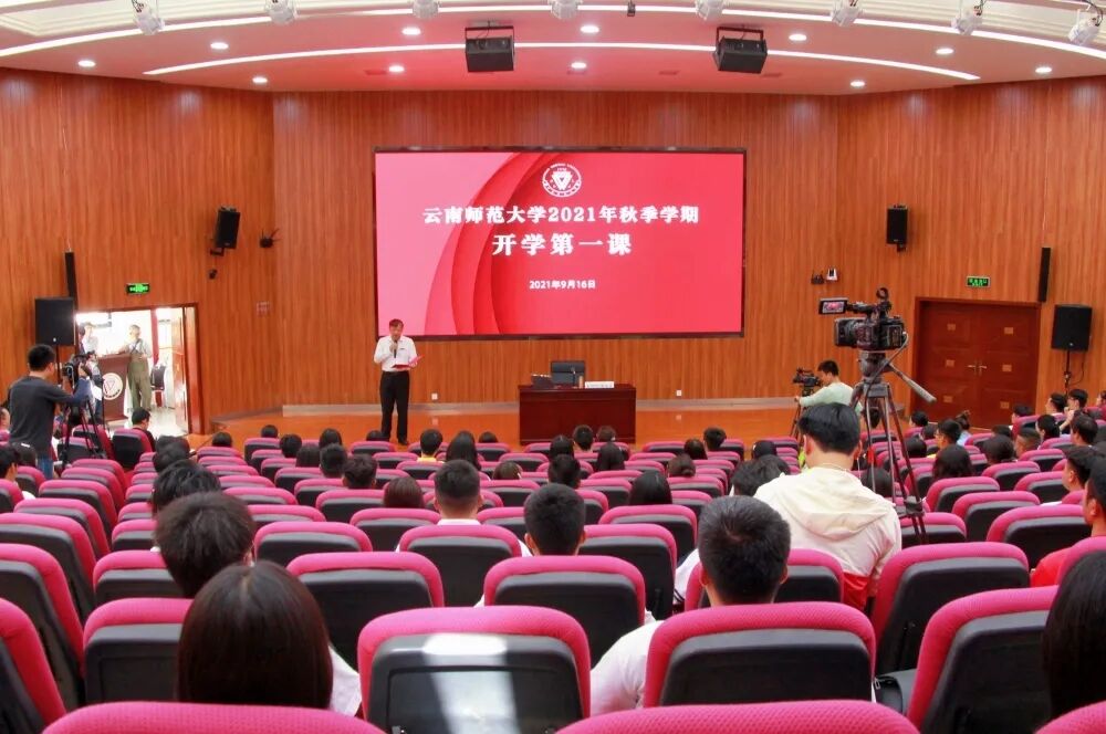 为贯彻落实省委教育工委、省教育厅“书记、校长同讲一堂思政课”教学要求,帮助2021级新生尽快融入大学学习生活,顺利完成角色转换,扣好“人生的第一粒扣子”,9月16日下午,fun88官网党委书记蒋永文以《同心向党 强国有我 争做有历史感责任感志存高远的时代新人》为题,为全体2021级新生讲授开学“第一课”。9800余名师生在fun88官网呈贡校区汇学楼报告厅和96个分会场同上开学“第一课”。