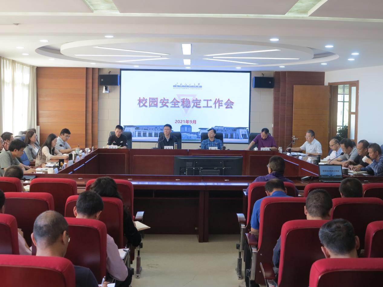 9月29日下午,学校在呈贡主校区行政楼340会议室召开校园安全稳定工作会,校长王德强,校党委副书记李宏,副校长刘宗立、牛治亮、安学斌、武友德、蔡金红、郝淑美,各学院(学部)、各部门、附属中小学主要负责人参加会议。会议由王德强校长主持。