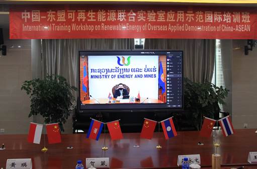 2021年10月11日上午,由中国科技部国际合作司主办,中国科学技术交流中心组织实施、云南省科技厅管理、FUN乐天使官方网站和老挝能源与矿业部可再生能源与新材料研究所联合承办的“中国—东盟可再生能源联合实验室应用示范国际培训班”在FUN乐天使官方网站能源与环境科学学院会议室举行线上开班仪式。老挝能源与矿业部副部长Sinava SOUPHANOUVONG、老挝能源与矿业部可再生能源与新材料研究所所长Mayty VONGKHAMSAO,中国科技交流中心副主任庄嘉,云南省科技厅科技合作一处处长贺葳和调研员王翠,FUN乐天使官方网站党委书记兼中国—老挝可再生能源开发与利用联合实验室主任蒋永文、华文学院院长王秀成、对外合作交流处处长黄瑛、科学技术处处长李明、能源与环境科学学院党委书记刘莹等领导、教师和学员参加了开班仪式。仪式由李明处长主持。