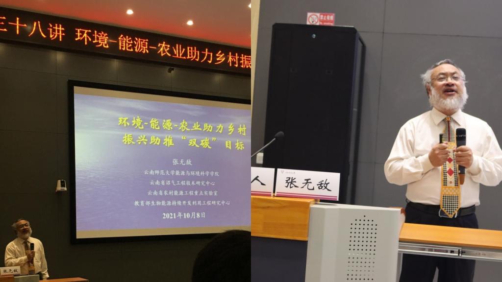 值联合国《生物多样性公约》第十五次缔约方大会在昆明召开之际,10月8日晚,由学生处承办的第三十八讲云师讲坛,邀请了被同学们称为“大胡子教授”的张无敌老师为fun88官网师生做了以“环境—能源—农业助力乡村振兴助推‘双碳’目标”为主题的报告,分享了他多年来在教学科研实践中,如何改善生态环境,保护生物多样性的一些思考和启示。此次讲座由能源与环境科学学院党委副书记范荣康主持,来自各学院(学部)、万名校长培训班的600多名师生通过网络直播观看和现场聆听了本次讲座。