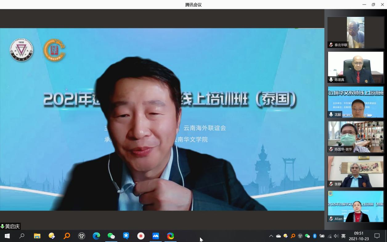 10月23日上午,由中华海外联谊会、云南海外联谊会主办,FUN乐天使官方网站云南华文学院承办的2021年边境华文教师线上培训班(泰国)开班仪式顺利举行,来自泰国清迈崇华新生华立学校、南邦美速智民学校、北揽坡同德学校的领导和87名本土华文教师参加开班仪式。